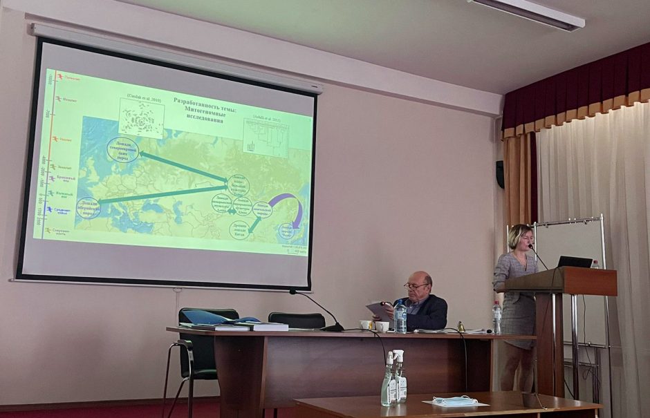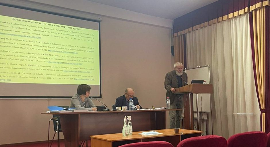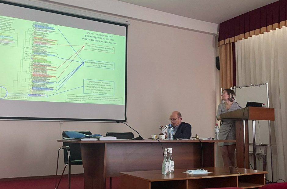 В конференц-зале Института молекулярной и клеточной биологии СО РАН (г. Новосибирск) 14 сентября 2022 г. состоялась защита кандидатской диссертации Марии Александровны Куслий по теме «Генетическое разнообразие древних и современных лошадей Алтая и сопредельных территорий» (научный руководитель – А.С. Графодатский, член-корреспондент РАН, доктор биологических наук, профессор, зав. лабораторией цитогенетики животных). Эта работа была частично подготовлена при финансовой поддержке проекта Российского научного фонда (№ 22-18-00470, «Мир древних кочевников Внутренней Азии: междисциплинарные исследования материальной культуры, изваяний и хозяйства»).