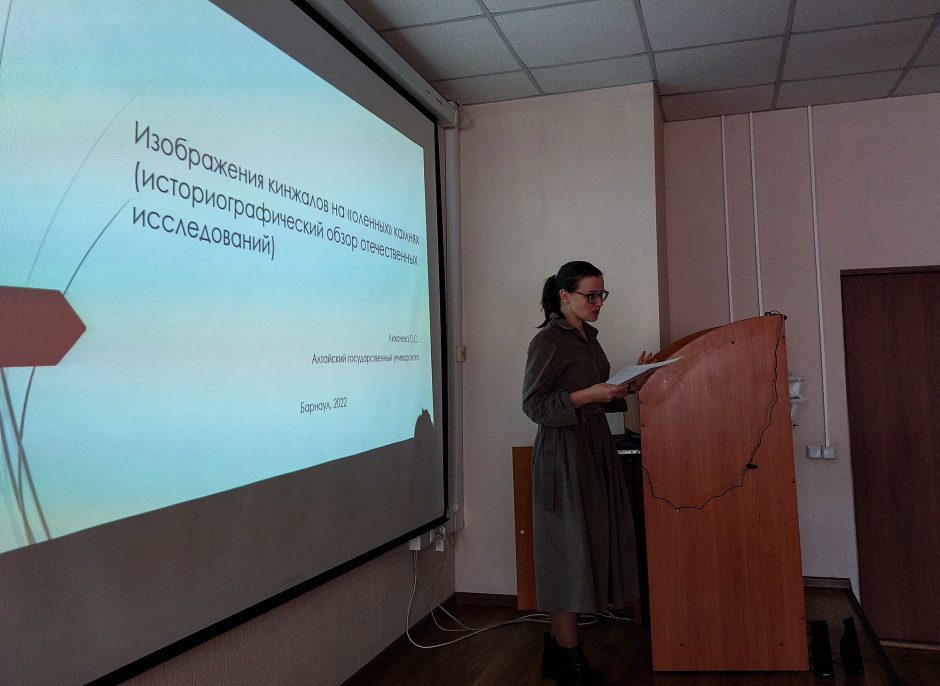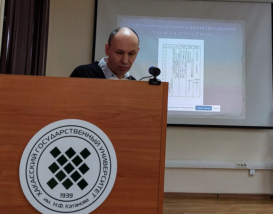С докладом на конференции выступил основной исполнитель проекта РНФ д.и.н., профессор кафедры археологии, этнограф и музеологии АлтГУ В.В. Горбунов – «Древковое оружие кочевников Центральной Азии в хунно-сяньбийское время», а также молодые участники – к.и.н. О.С. Лихачева «Изучение изображений кинжалов на «оленных» камнях: историографический обзор» и к.и.н. П.О. Сенотрусова «Кинжал из могильника Пинчуга-6 (нижнее Приангарье)», которая еще являлась сопредседателем одной из секций.