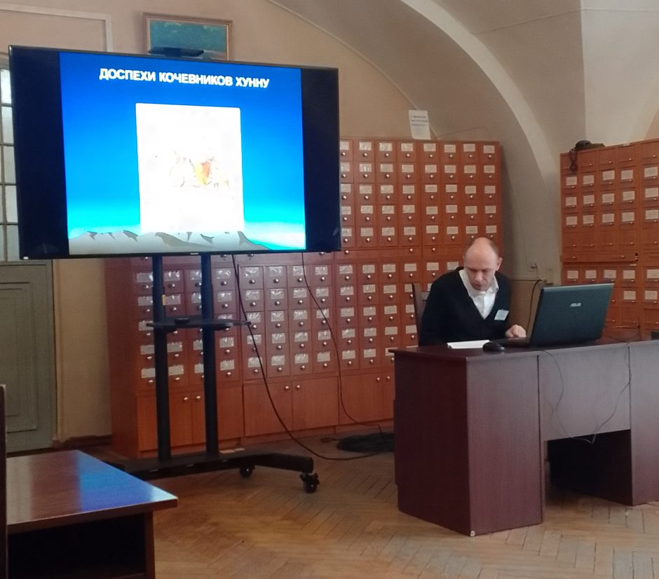 На Секции 2: «Оружие. Новые исследования в области оружиеведения» выступили — доктор исторических наук, доцент, профессор кафедры археологии, этнографии и музеологии Института истории и международных отношений Алтайского государственного университета В.В. Горбунов с докладом: «Доспехи кочевников хунну», и кандидат исторических наук, научный сотрудник Отдела сопровождения НИОКТР, старший преподаватель кафедры археологии, этнографии и музеологии О.С. Лихачева с докладом — «Об одном типе кинжалов раннего железного века с территории Алтая и Минусинской котловины». Доклады сопровождались презентациями.