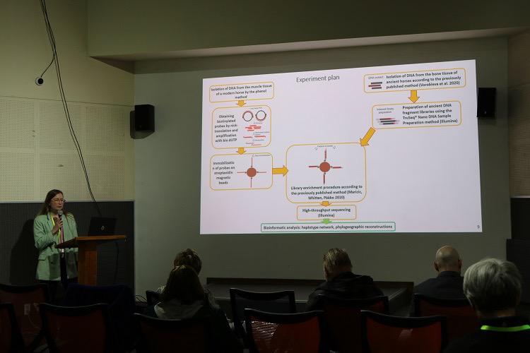 «ОЛЕННЫЕ» КАМНИ НА ПАМЯТНИКЕ ХУШУУН ДЭНЖ-04 (ЦЕНТРАЛЬНАЯ МОНГОЛИЯ): НОВЫЕ ВОЗМОЖНОСТИ ДОКУМЕНТИРОВАНИЯ С ИСПОЛЬЗОВАНИЕМ ЦИФРОВЫХ ТЕХНОЛОГИЙМария Куслий изложила на английском языке предварительные результаты палеогенетических исследований. Мы впервые стали изучать лошадей периода поздней бронзы, кости которых обнаружены на территории юга Западной Сибири, и получили весьма неожиданные результаты. В связи с этим, было решено расширить зону исследований, увеличить объем анализируемого материала и перепроверить ранее полученные данные.