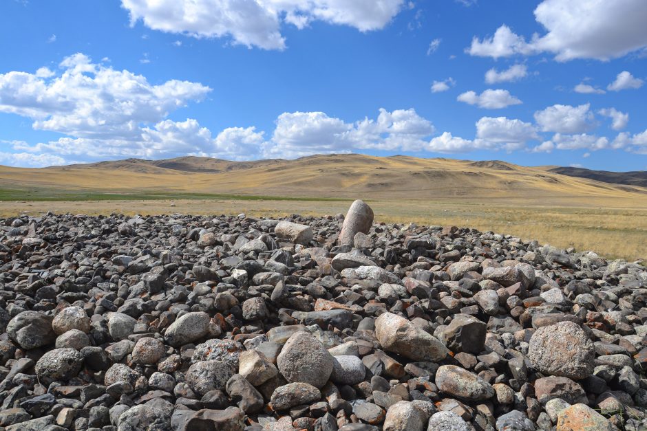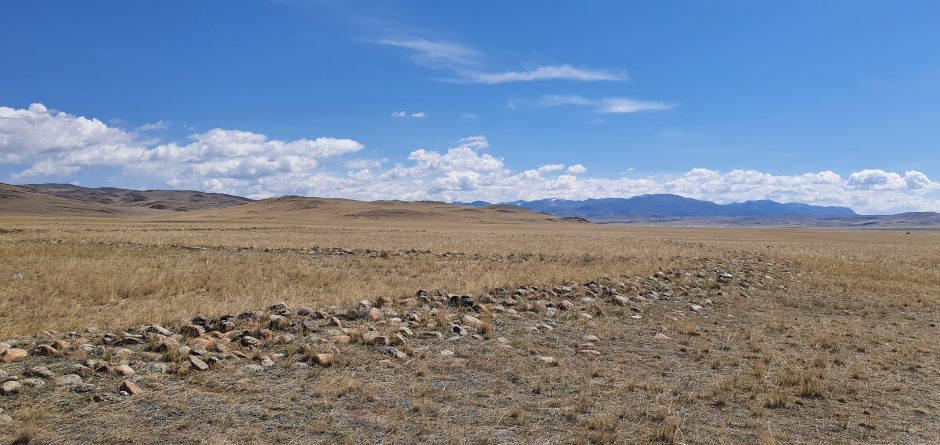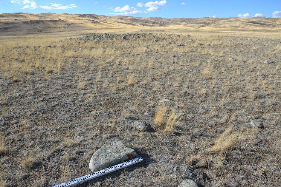 — Мы зафиксировали, на мой взгляд, самый северный мемориальный комплекс, связанный с древними воинствующими кочевниками, которые жили в начале I тысячелетия до н.э. Условно эту общность сейчас называют культурой херексуров и «оленных» камней. Изученный комплекс состоял из поставленных в ряд «оленных» камней, а рядом располагались многочисленные поминальники. Именно такие объекты являются хорошим маркером для подтверждения моей концепции о существовании самой архаичной кочевой империи во Внутренней Азии. От отрогов Памира до востока Монголии и от Южной Сибири до северных пустынь Китая обнаруживаются огромные курганы — свидетельства жизни и деятельности этих кочевников. Самый большой херексур находится на территории Монгольского Алтая и хорошо виден из космоса. В диаметре он достигает порядка 300 метров и более 20 метров в высоту.
