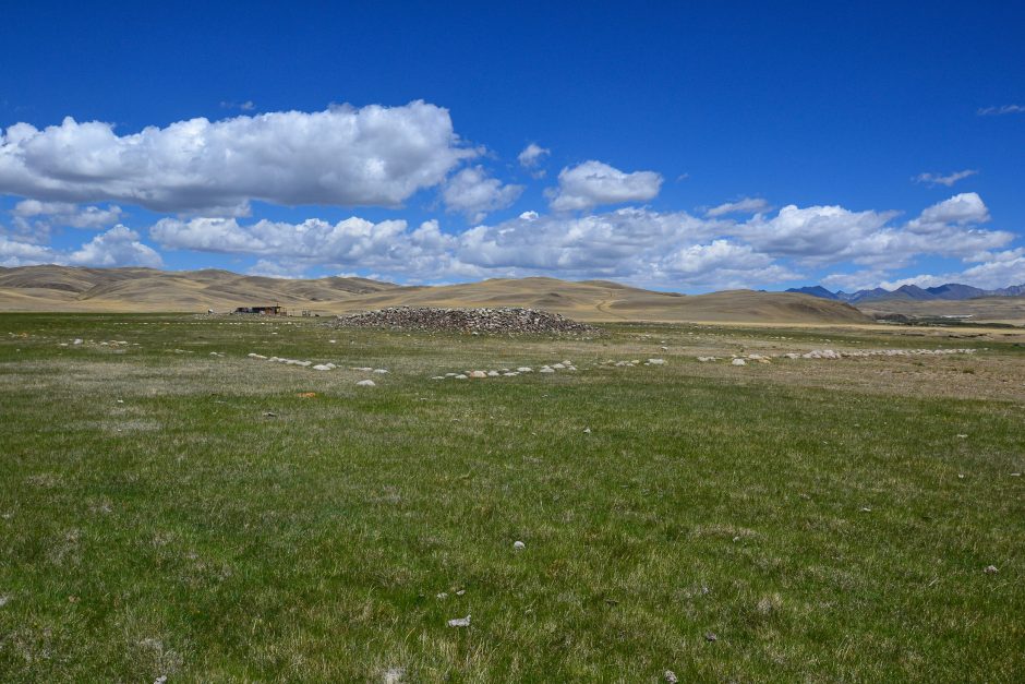 Часть «оленных» камней стоит или лежит на древних курганах (херексурах), которых достаточного много в долине Юстыта. Но один из археологических объектов представляет для ученых наибольший интерес.