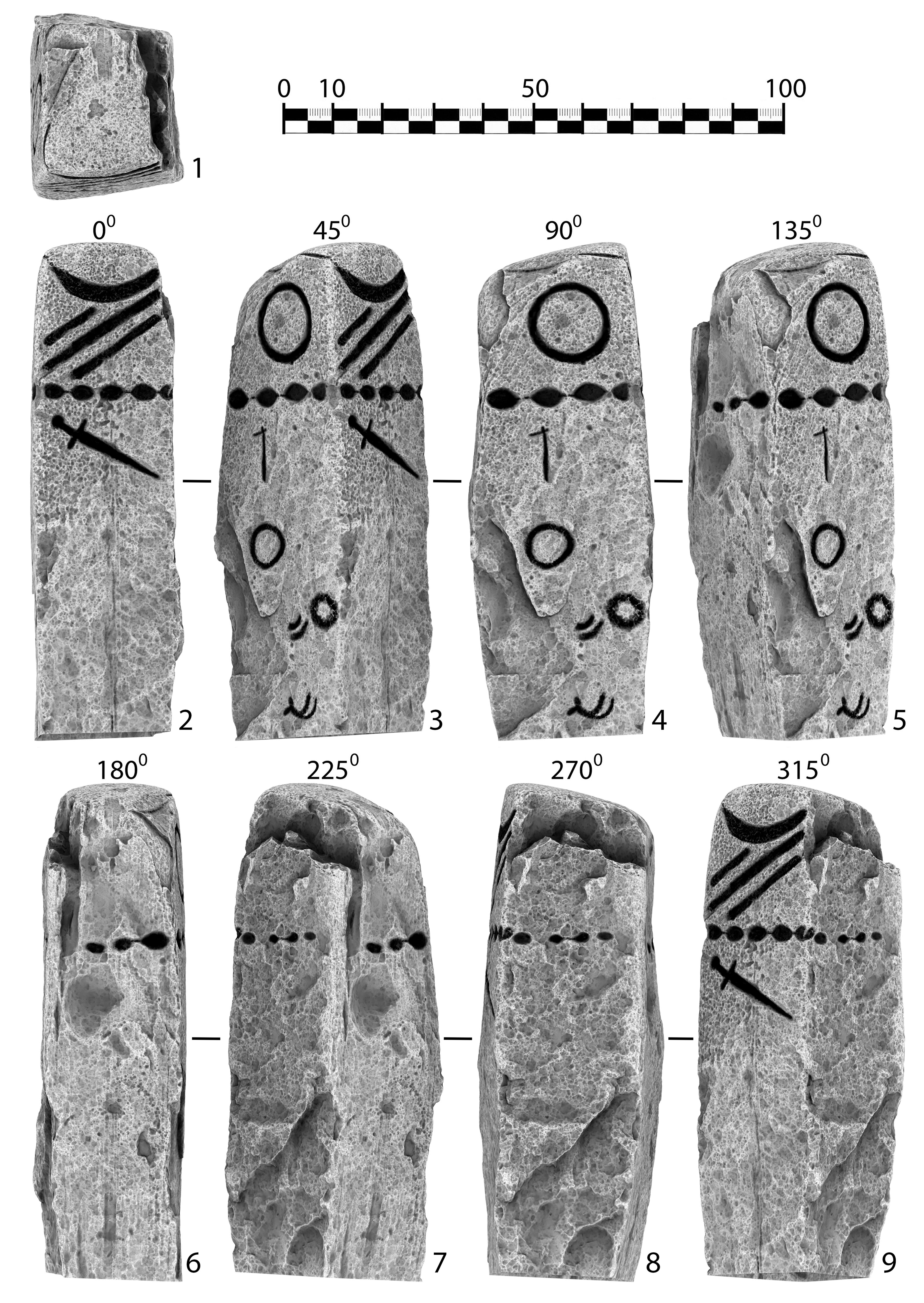 При изучении «оленных» камней основной задачей является адекватная передача изображений, находящихся на нем. Поиск оптимальных методик автоматической компьютерной прорисовки приводил к различным решениям (Миклашевич, 2011; Тишкин, 2013; и др.), которые имели как свои достоинства, так и недостатки. Опыт такой работы уже демонстрировался (Тишкин и др., 2020; Свойский и др., 2021; Тишкин, Свойский, Зиганшина, 2022; Тишкин, Бондаренко, 2023; и др.), но работа в выбранном направлении продолжается.